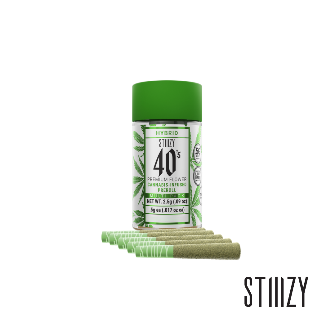 Elevate your pre-roll game. Stiiizy 40s pre-rolls are setting the standard with high potency, cannabis infused joints coated evenly with kief. Using our proprietary live resin infusion methods, we’ve designed every pre-roll to offer 40%+ THC potency with a unique flavor profile. With a smooth inhale and tasteful exhale, each and every Stiiizy 40 is packed with indoor grown flower, specifically made to ensure a potent and long-lasting high. Spark up the 40s.